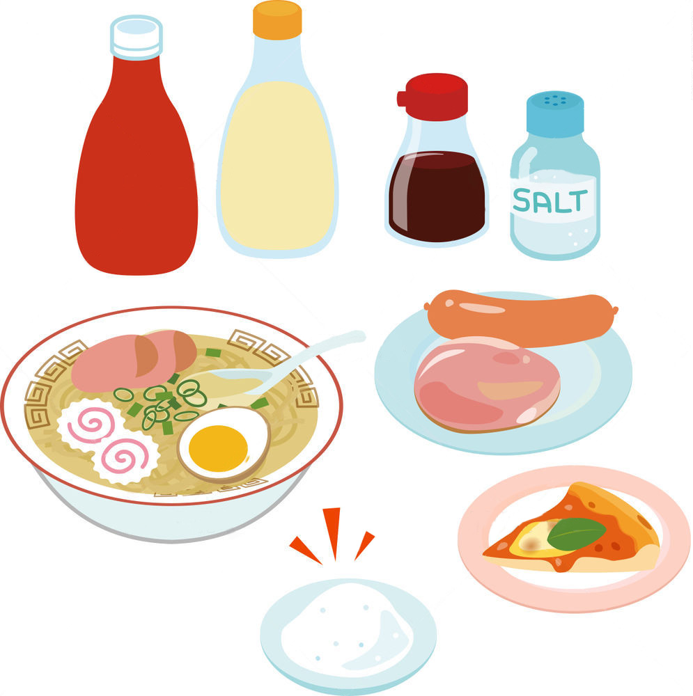 塩ざけやたらこは1週間に1〜2回、漬け物やみそ汁は1日1回というように、食塩の多い食品を食べる機会を減らすようにします。汁に食塩の多いラーメンやそばなどの汁は、飲まずに残すようにしましょう。
